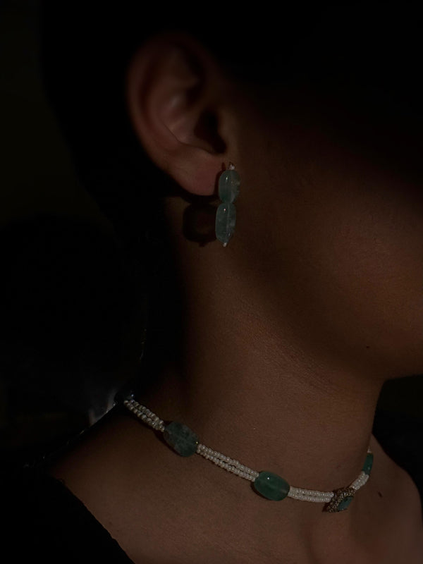 Sterling silver with Aquamarine stones evoking the calm and elegance of flowing water.
