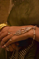 A silver aangla adorned with 3D motifs, pearls, and zircons—graceful, charming, and effortlessly stylish.