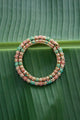 This handcrafted gold bangle features a stunning blend of pink and turquoise stones with delicate pearls, bringing a touch of tradition and color to your look.